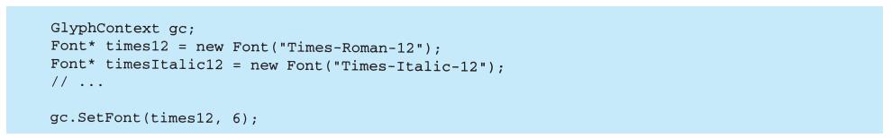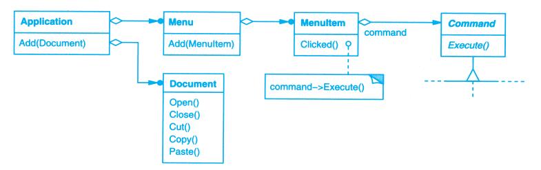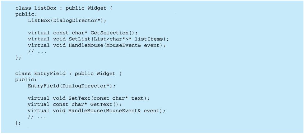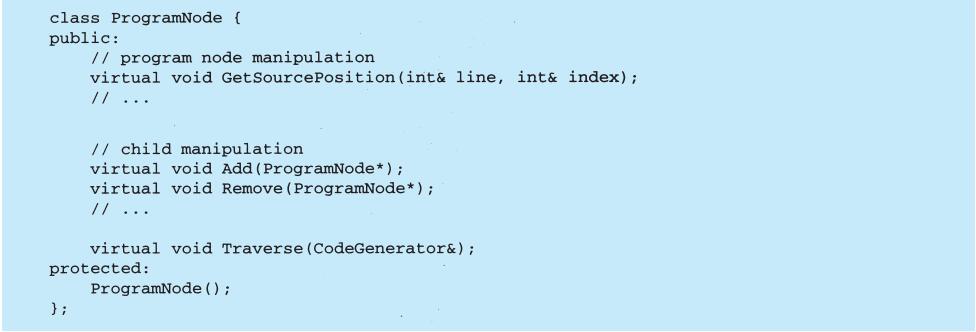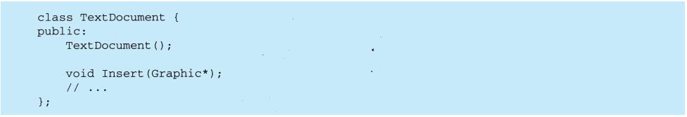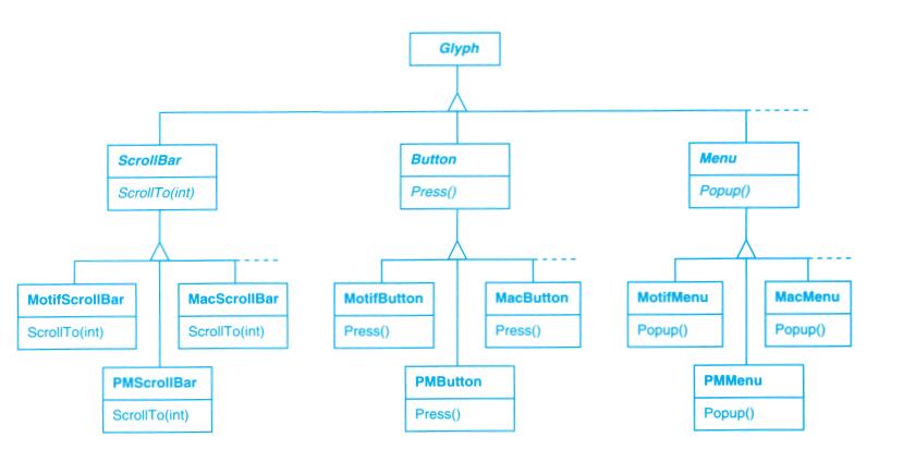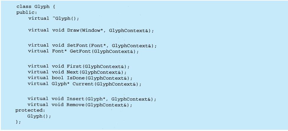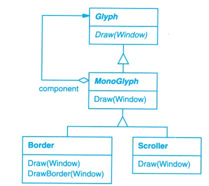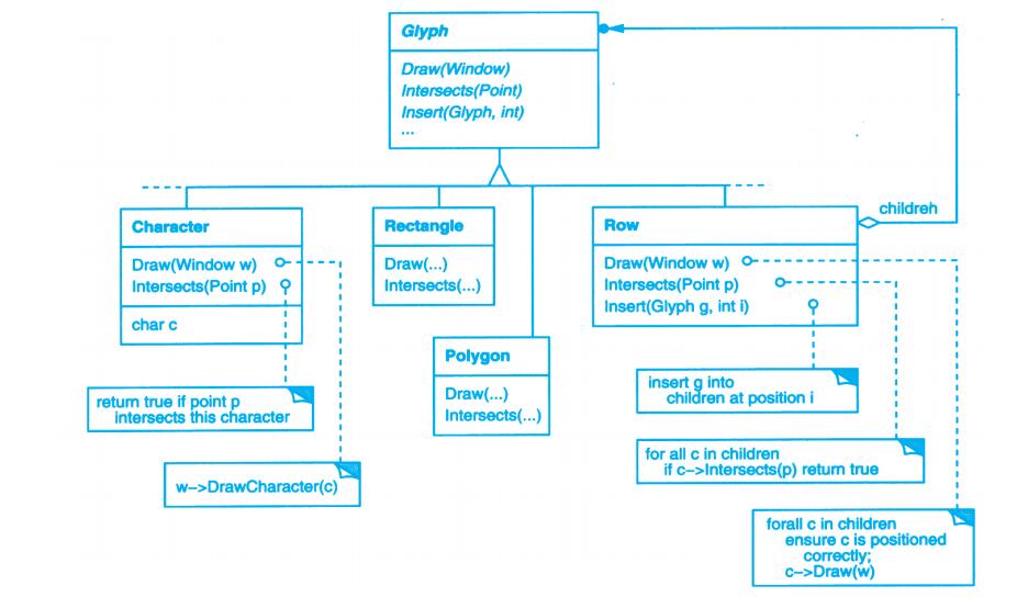每个设计模式至少包含一个类图,需要时也使用其他图形表示来补充说明。类图和对象图是基于OMT(Object Modeling Technique)[RBP+91,Rum94]的[1]。交互图来自于Objectory[JCJO92]和Booch方法。