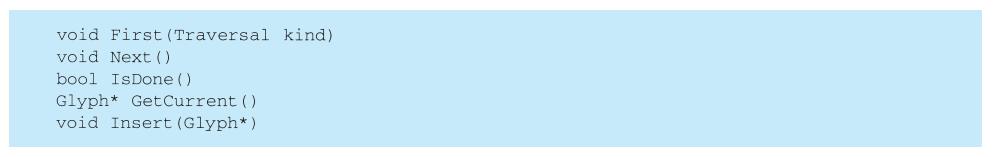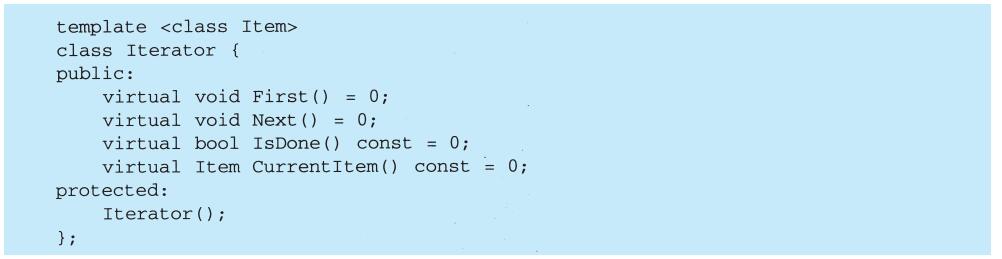 ·Iterator,顺序存取聚集对象的接口。