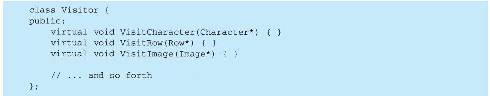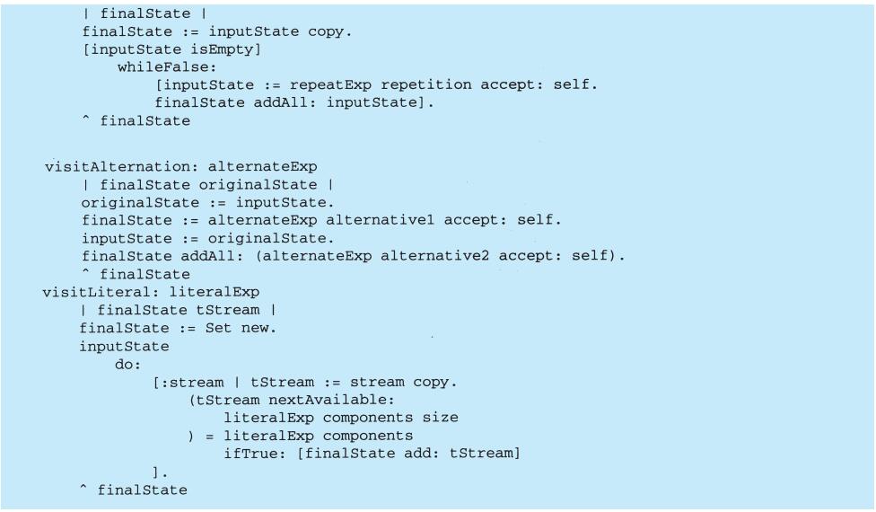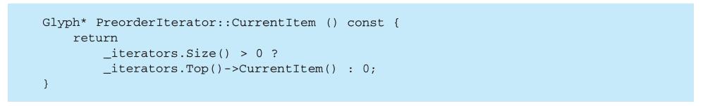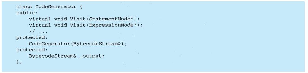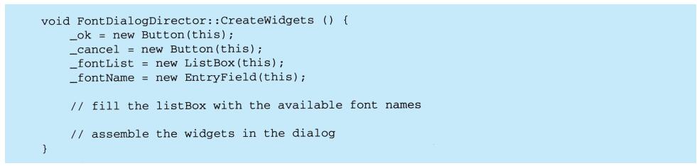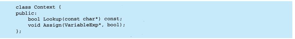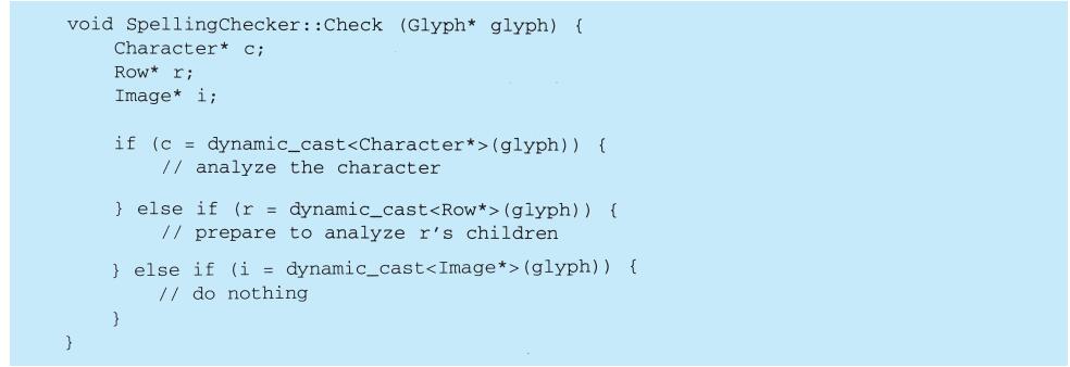 程序设计语言的选择非常重要,它将影响人们理解问题的出发点。我们的设计模式采用了Smalltalk和C++的语言特性,这个选择实际上决定了哪些机制可以方便地实现,而哪些则不能。若我们采用过程式语言,可能就要包括诸如“继承”“封装”和“多态”的设计模式。相应地,一些特殊的面向对象语言可以直接支持我们的某些模式,例如:CLOS支持多方法(multi-method)概念,这就减少了Visitor模式的必要性。事实上,Smalltalk和C++已有足够的差别来说明对某些模式一种语言比另一种语言表述起来更容易一些(参见5.4节Iterator模式)。