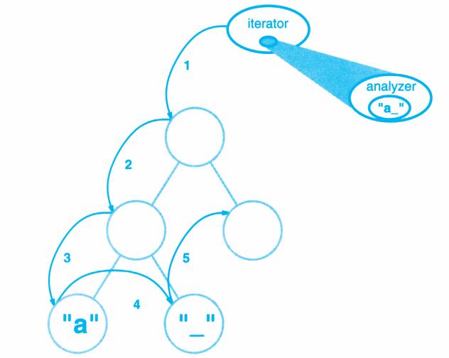 对象图仅仅描述实例。它描述了设计模式中的对象某个时刻的状况。对象的名字通常表示为“aSomething”,其中Something是该对象的类。我们用来表示对象的符号(对标准OMT稍作修改)是一个圆角矩形,并以一条直线将对象名与对象引用分开。箭头表示对象引用。如图B-2所示。