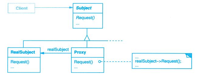 在某些设计模式中,标清楚客户类对参与类的引用是很有用的。在类图中,当某个客户类是某模式的参与者(即该客户类在这个模式中承担一定的责任)时,我们以正常的方式表示它,可以参见Flyweight(4.6);而当该客户不是该模式的参与者(即客户类在模式中不承担责任),仅仅是为了说明其与模式的参与者之间的交互关系时,我们以灰色来表示它。如图B-1b所示。代理模式(Proxy)就是一个例子。这种灰客户表示法也提醒我们在讨论模式参与者时不要漏掉客户类。