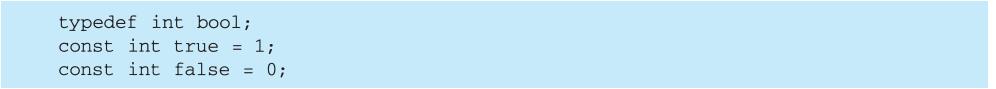在某些编译器中,一些新的C++标准类型可能还未实现。特别是,如果你的编译器没有定义bool类型,你可以像下面这样手工定义它: