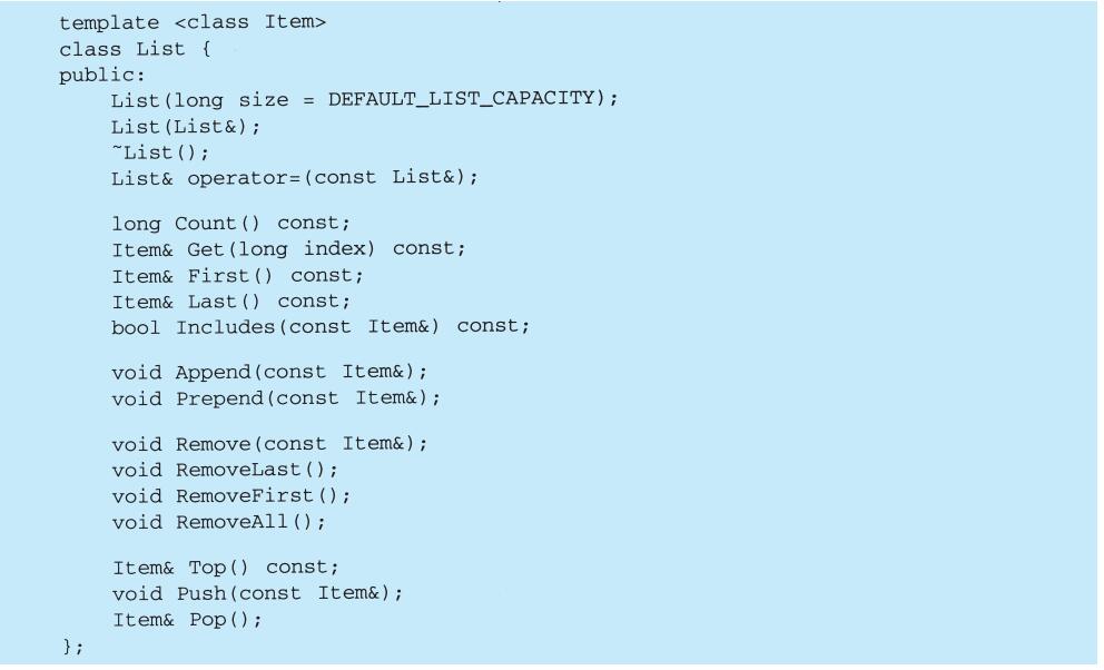 List模板类是一个用来存储对象序列的基本容器。List存放元素的值,其元素既可以是内置类型也可以是类的对象。例如,List<int>声明了一个整数序列。但在大多数模式中使用它来存储对象指针,比如List<Glyph*>。这样List类就可以用于异质元素列表。