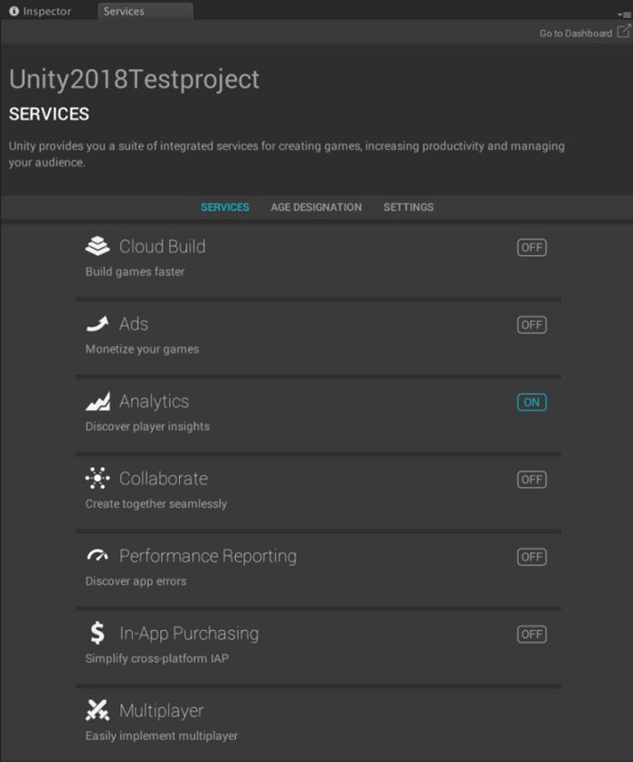 Unity预制了很多服务,使用这些服务不需要接入第三方SDK,直接就可以设置它们。在导航菜单栏中选择Window→Services菜单项,即可弹出服务窗口,如图1-9所示。更多服务的用法,读者也可以自行拓展学习。