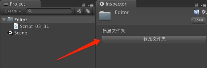 打开Unity后,如图2-1所示,点击右上角的Open按钮即可打开一个已有的Unity项目。如果打开项目时需要打开指定的场景,则在Assets文件夹中选择一个Unity场景,双击场景即可,如图2-2所示。