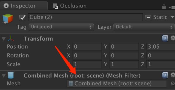 数组中并且设置它的位置,最终使用CombineMeshes()