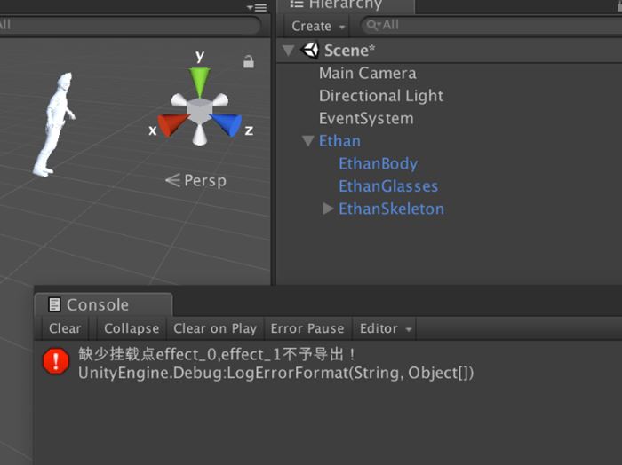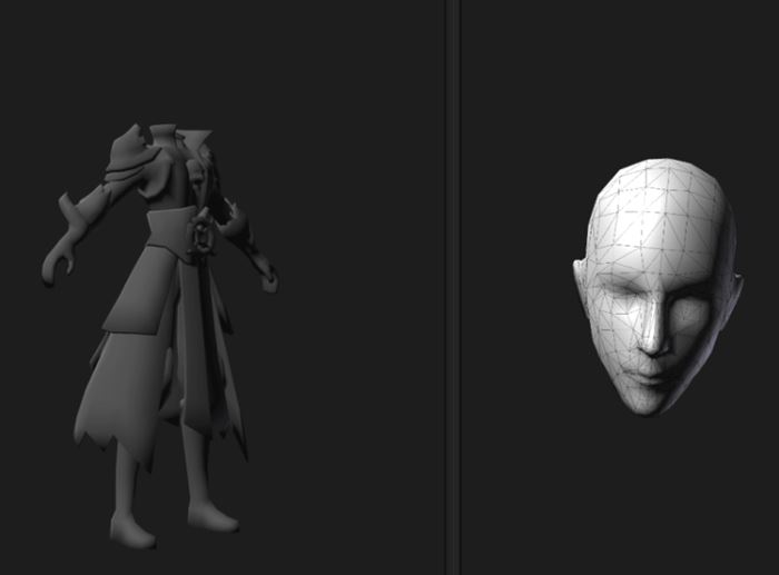 如图13-37所示,身体和头部是两个Mesh,此时就算它们共用了相同的材质和贴图,也会进行多次DrawCall,所以需要将各部位合并成一个Mesh。如果还需要合并贴图以及骨骼动画,那么还需要保证UV、骨骼权重和骨骼绑定姿势正确合并。