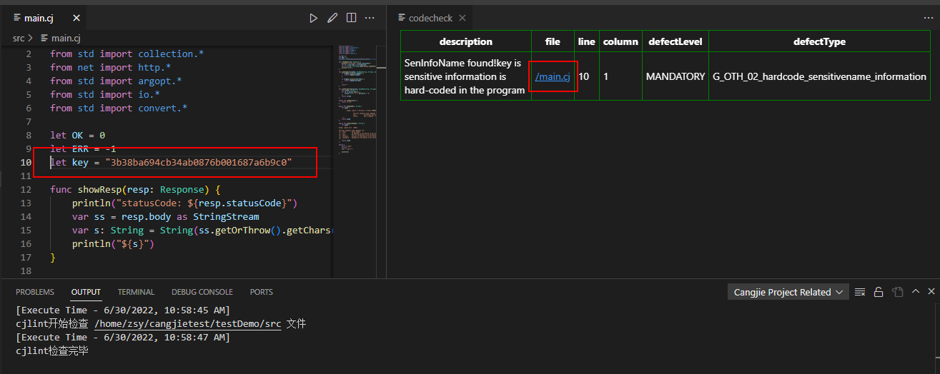 IDE 中的静态检查功能基于静态检查工具 cjlint,该功能可以识别代码中不符合编程规范的问题,帮助开发者发现代码中的漏洞,写出满足 Clean Source 要求的仓颉代码。