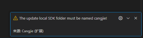cangjie文件夹中的 SDK,当目标文件夹名称不为cangjie时,会提示相关信息并取消更新操作。