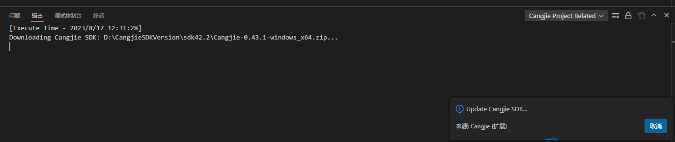 - 仓颉插件提供了仓颉 SDK 最新版本下载和更新功能,开发者可以在 VSCode 界面完成最新版本仓颉 SDK 的下载和本地环境部署。
