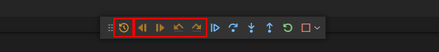您可以单击顶部调试工具栏上的时钟图标进入反向调试模式,使用工具栏上正反向继续、正反向单步控制程序,查看历史记录的线程、堆栈、变量信息,如下图: