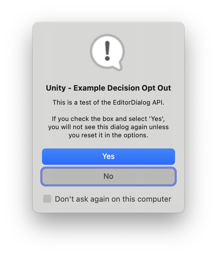 DisplayDecisionDialogWithOptOutDisplays a decision dialog box with a title, icon, message, two buttons, and an opt-out checkbox.