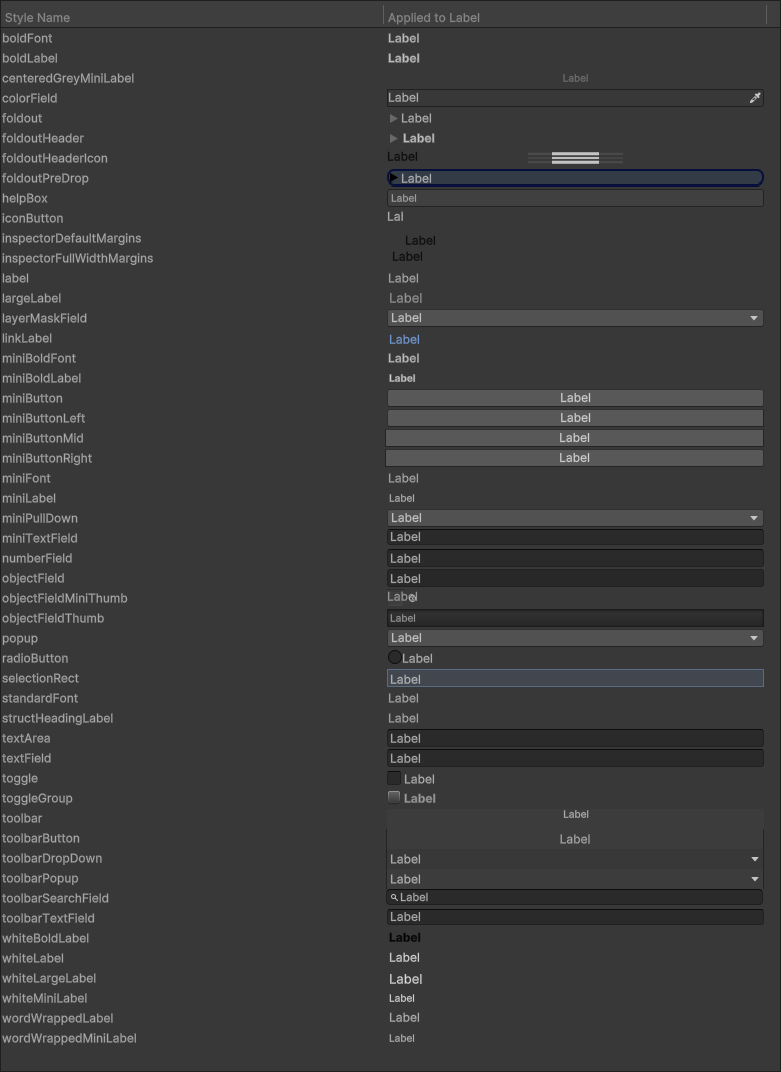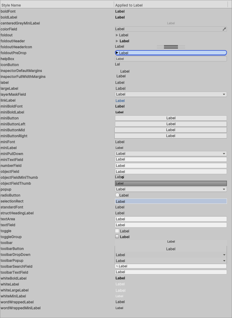 | popup | Style used for EditorGUI.Popup, EditorGUI.EnumPopup,. |