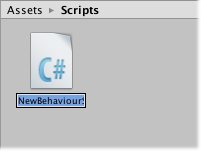 此操作将在 Project 面板中选择的任何文件夹内创建新脚本。新脚本文件的名称将处于选中状态,提示输入新名称。