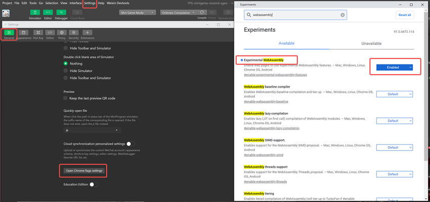 如果项目较大,开发者工具崩溃,请增加开发者工具内存限制