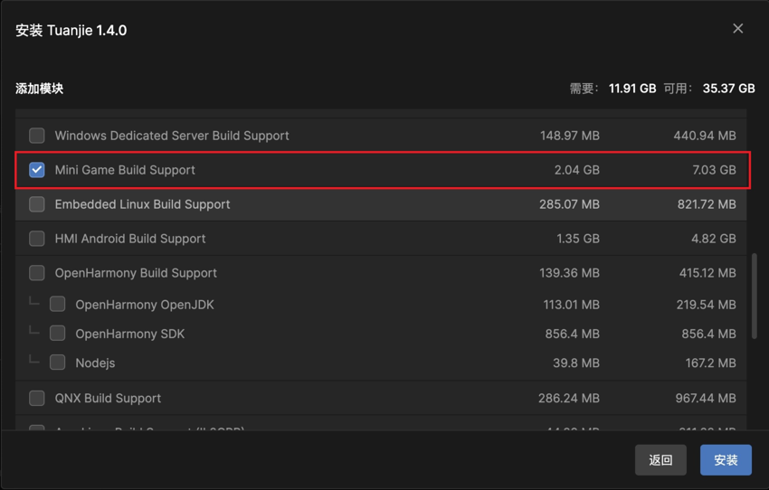 Mini Game Build Support 安装