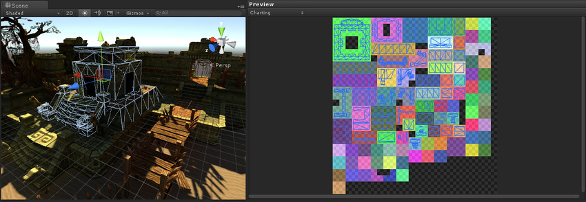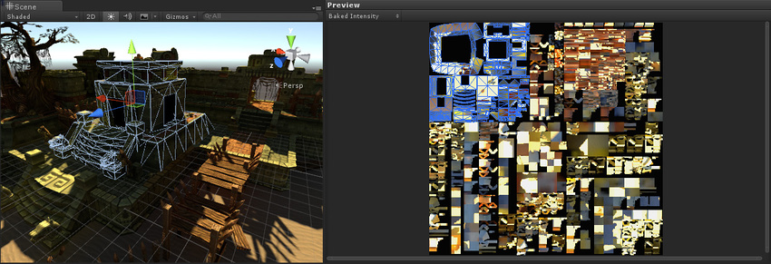 It is important to be able to view the lightmap UVs that are being used, and Unity has a visualization tool to help you with this. First, open the Lighting window (menu: Window > Rendering > Lighting ) and tick the Auto checkbox at the bottom. This ensures that your bake and precompute are up-to-date, and outputs the data that is needed to view the UVs. Wait for the process to finish (this can take some time for large or complex Scenes).