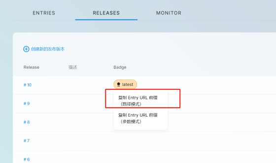 5. 点击 latest ,复制 Entry URL 前缀,该前缀将作为 Texture Manager 的CDN ,也是下一步骤中小游戏的游戏资源 CDN 。
