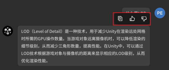 会话区域底部同样也会提供反馈按钮,以便对最近一次回答的质量进行快速反馈: