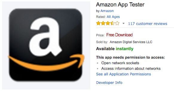 After you have installed the Amazon Appstore, install the Amazon App Tester.