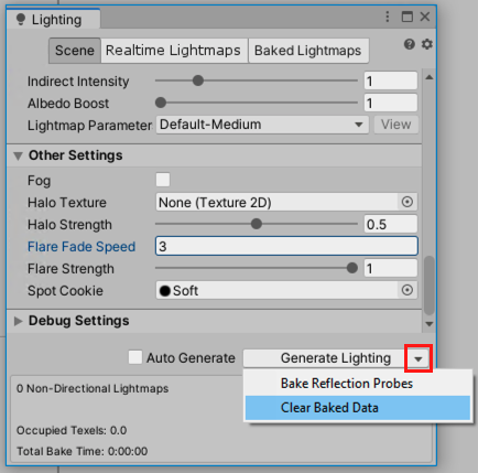 To upgrade the LOD in your Scene, clear the baked lightmap and then regenerate it. To do this: