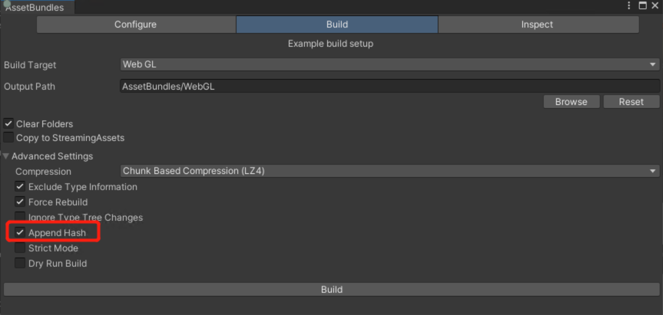 BuildAssetBundleOptions.AppendHashToAssetBundleName 选项,以确保 AssetBundle 名称包含哈希值。