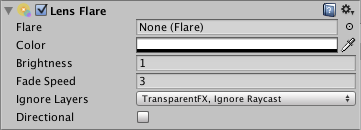 | Fade Speed | Unity 淡入和淡出镜头光晕的速度。 |