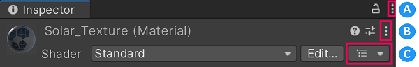 | Edit Shader | Open the source file for the shader asset that this Material uses. |