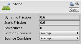 The Physic Material adjusts friction and bouncing effects of colliding GameObjects.