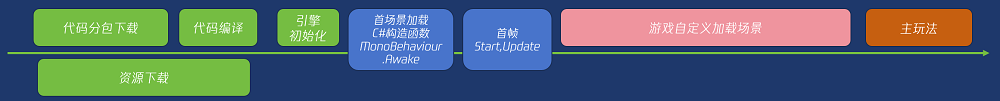 因此,通过精简首场景、压缩资源和简化首帧代码逻辑,用户可以大幅减少下载首包文件和加载首场景的时间。引擎初始化时间则需要通过优化引擎本身来降低, 首包文件大小也能通过引擎的优化降低一部分。