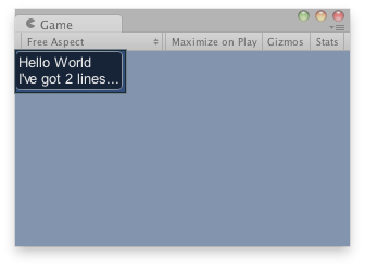public class ExampleScript : MonoBehaviour { string stringToEdit = "Hello World\nI've got 2 lines...";