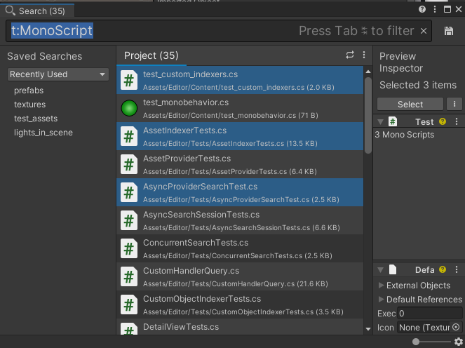 using UnityEngine; using UnityEditor; using UnityEditor.Search; static class Example_ISearchView_AddSelection { static ISearchView s_View; [MenuItem("Examples/ISearchView/AddSelection")] public static void Run() { s_View = SearchService.ShowContextual("asset"); s_View.SetSearchText("t:MonoScript"); EditorApplication.delayCall += DisplayResultsWhenReady; } public static void DisplayResultsWhenReady() { // Wait until results are ready to process. if (s_View.results.pending) { EditorApplication.delayCall += DisplayResultsWhenReady; return; } // Use AddSelection to append to the current selection. s_View.AddSelection(0); s_View.AddSelection(2); s_View.AddSelection(4); // Validate what is actually selected: var selection = s_View.selection; Debug.Log(selection.Count); // 3 Debug.Log(selection.MinIndex()); // 0 Debug.Log(selection.MaxIndex()); // 4 } }