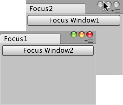 The Focus public method controls which window is active for use of the keyboard. In the examples below the active EditorWindow keyboard is changed to a different EditorWindow keyboard. Additional resources: focusedWindow.