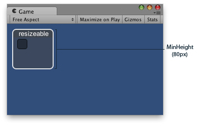 void OnGUI() { windowRect = GUILayout.Window(0, windowRect, ScalingWindow, "resizeable", GUILayout.MinHeight(80), GUILayout.MaxHeight(200)); }